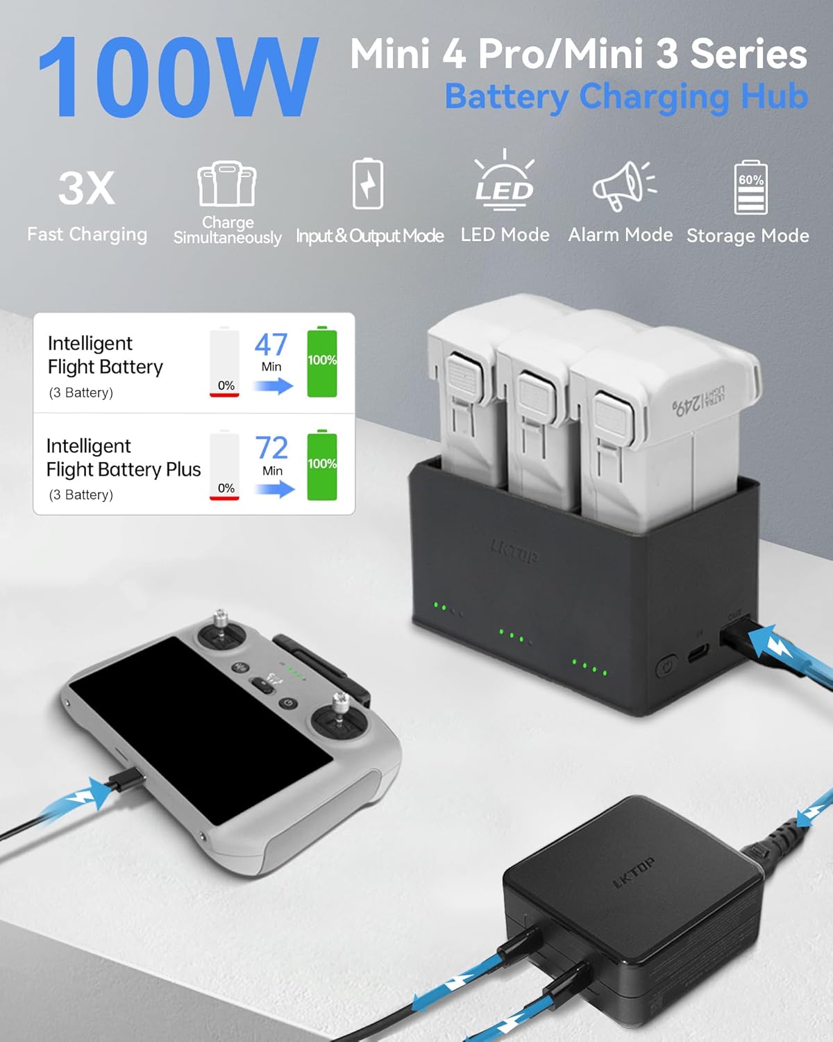 LKTOP 200W Battery Charging Hub for DJI Matrice 4Series / Air 3 Series /Mavic 3Series /EVO Max/llSeries