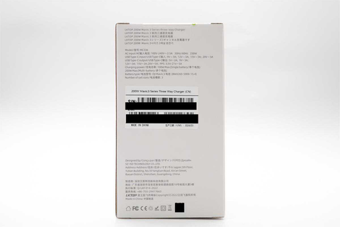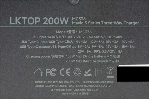 The parameter inscriptions and certification marks silk-screened on the bottom of the LKTOP 200W Mavic 3 series three-channel charger are the same as those on the packaging box, so I won’t go into details here.
