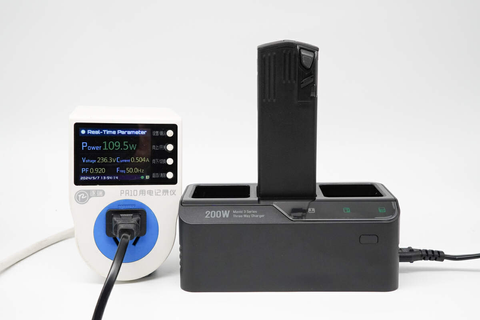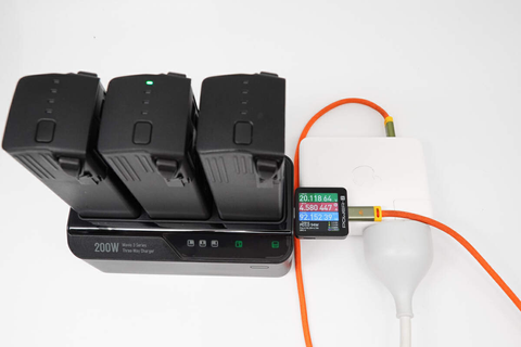 The LKTOP 200W Mavic 3 series three-channel charger supports up to 200W charging. Use the original power cord to charge three Mavic 3 series batteries at the same time, and connect the PA300 series power meter to record the charging data. The test results are as follows.
