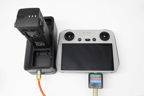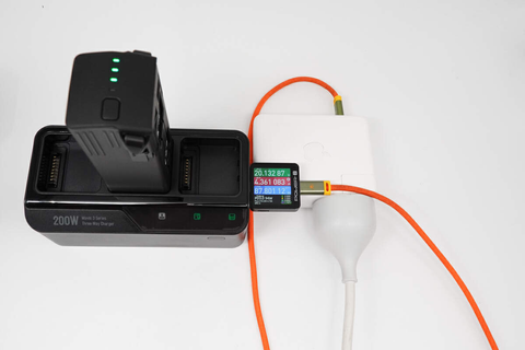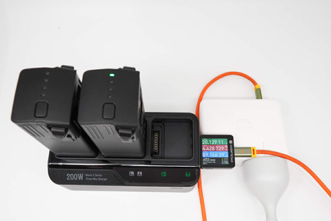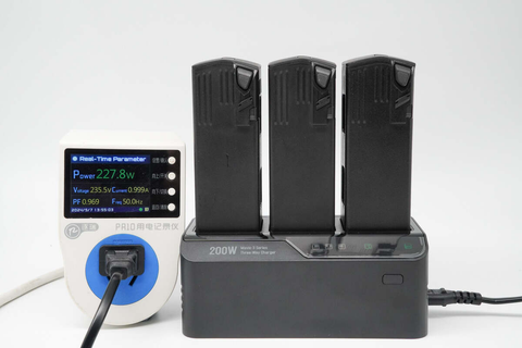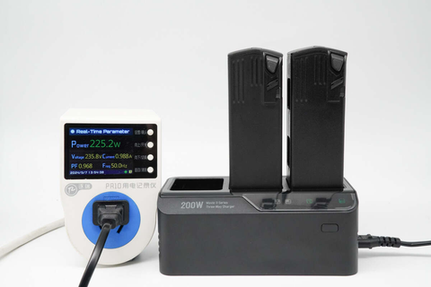 Powered by the standard AC power cord charger, when two Mavic 3 series batteries are inserted, the power recorder shows that the power at this time is 225.2W.