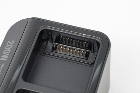The charging slot of the LKTOP 200W Mavic 3 series three-channel charger has a unique eight metal contacts for connecting the Mavic 3 series battery.