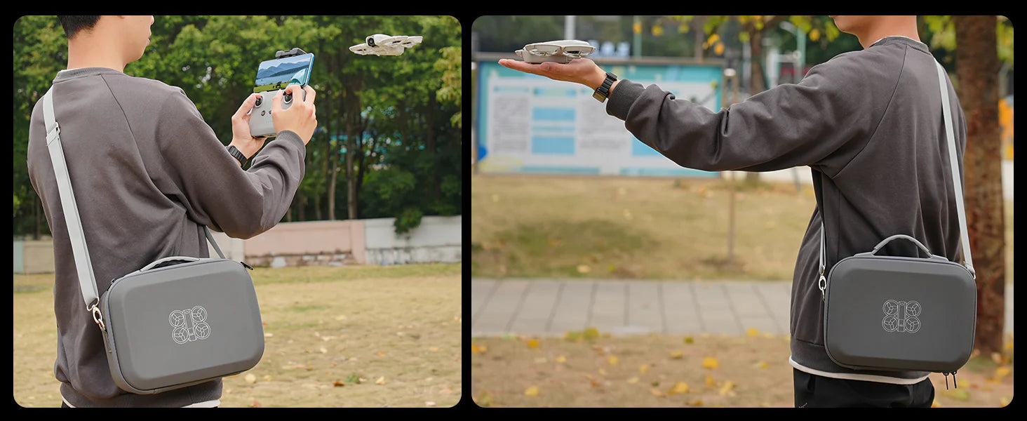 This DJI NEO storage case is compact in size and lightweight in design, making it easy for you to travel. Measuring 10.83 x 7.68 x 5.91 inches (27.5 x 19.5 x 15 cm), it easily fits into a backpack or suitcase. The sturdy handles and removable shoulder strap offer multiple carrying options, either handheld or crossbody, allowing you to easily and conveniently transport your DJI NEO drone and accessories.