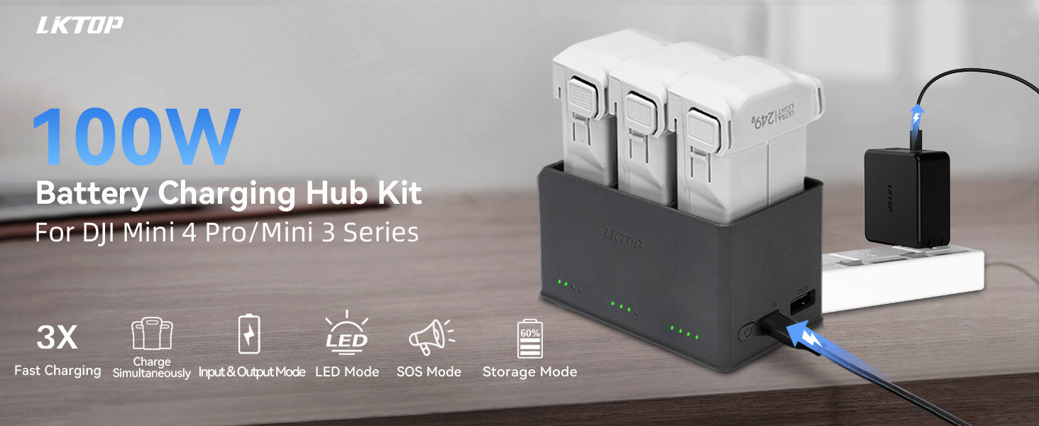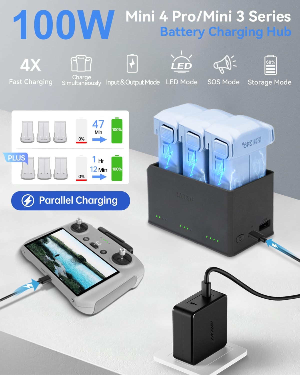 LKTOP 100W Fast Charging Hub for DJI Mini 5 Pro/Mini 4 Pro/Mini 3 Series