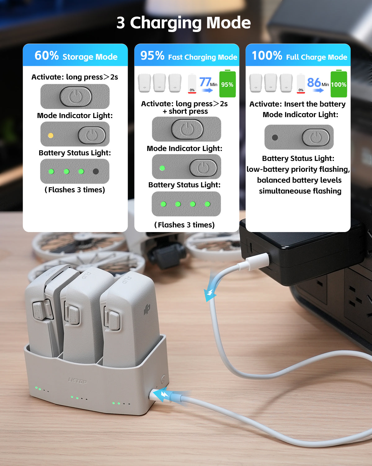 The LKTOP Charging Hub offers storage, fast, and full charge modes to suit your flight and battery maintenance needs.