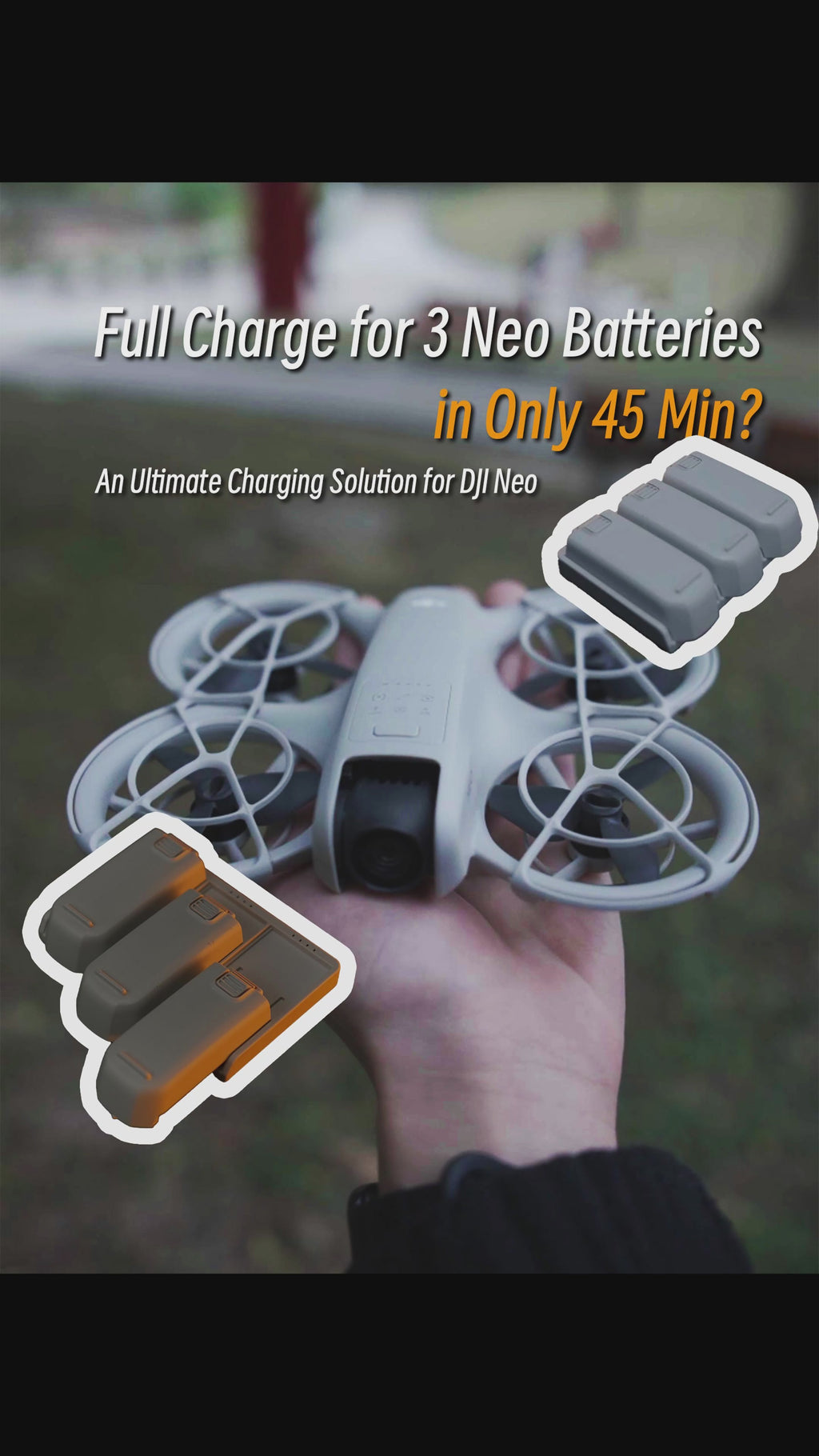 - 🔋【Parallel Charging】The Replacement DJI Neo Charging Hub can fully charge 3Pcs DJI Neo intelligent flight batteries simultaneously in 45 min. It is recommended that the charging hub be connected to a charger with a power rating of 65W or higher for use.
