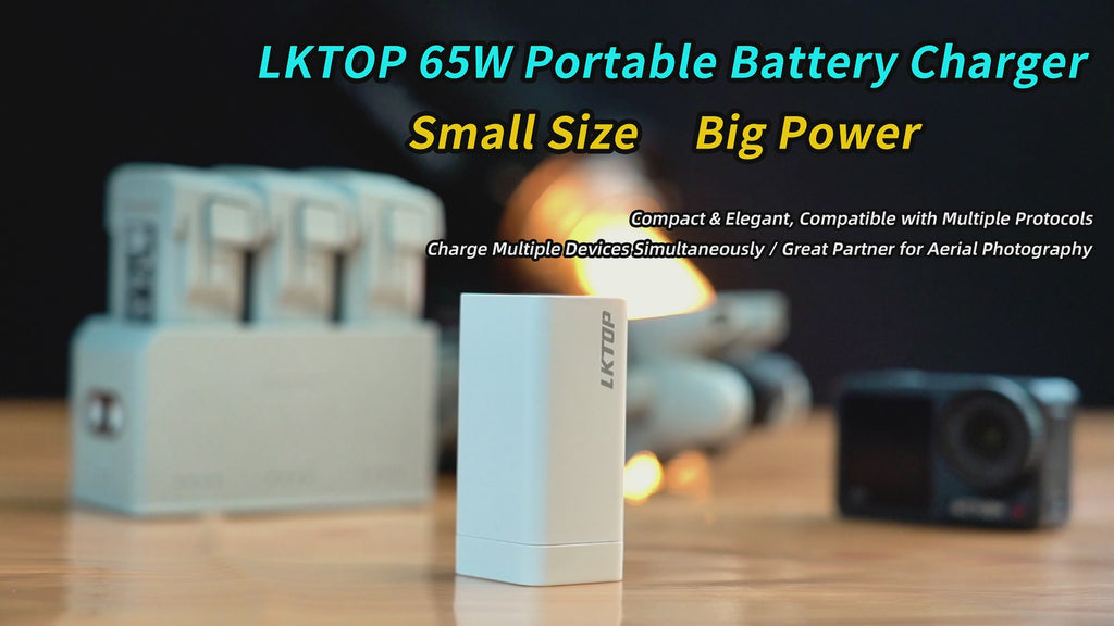 LKTOP 65W Portable Battery Charger for DJI/Specta Flip/Mini Series/Air 3/Air 3S/Mavic 3 Series/Avata 2/Mini 4K/Neo Drone, Controller, Osmo Pocket/2/3, Action 3/4/5 Pro, Goggles 2 (with C to C Cable)