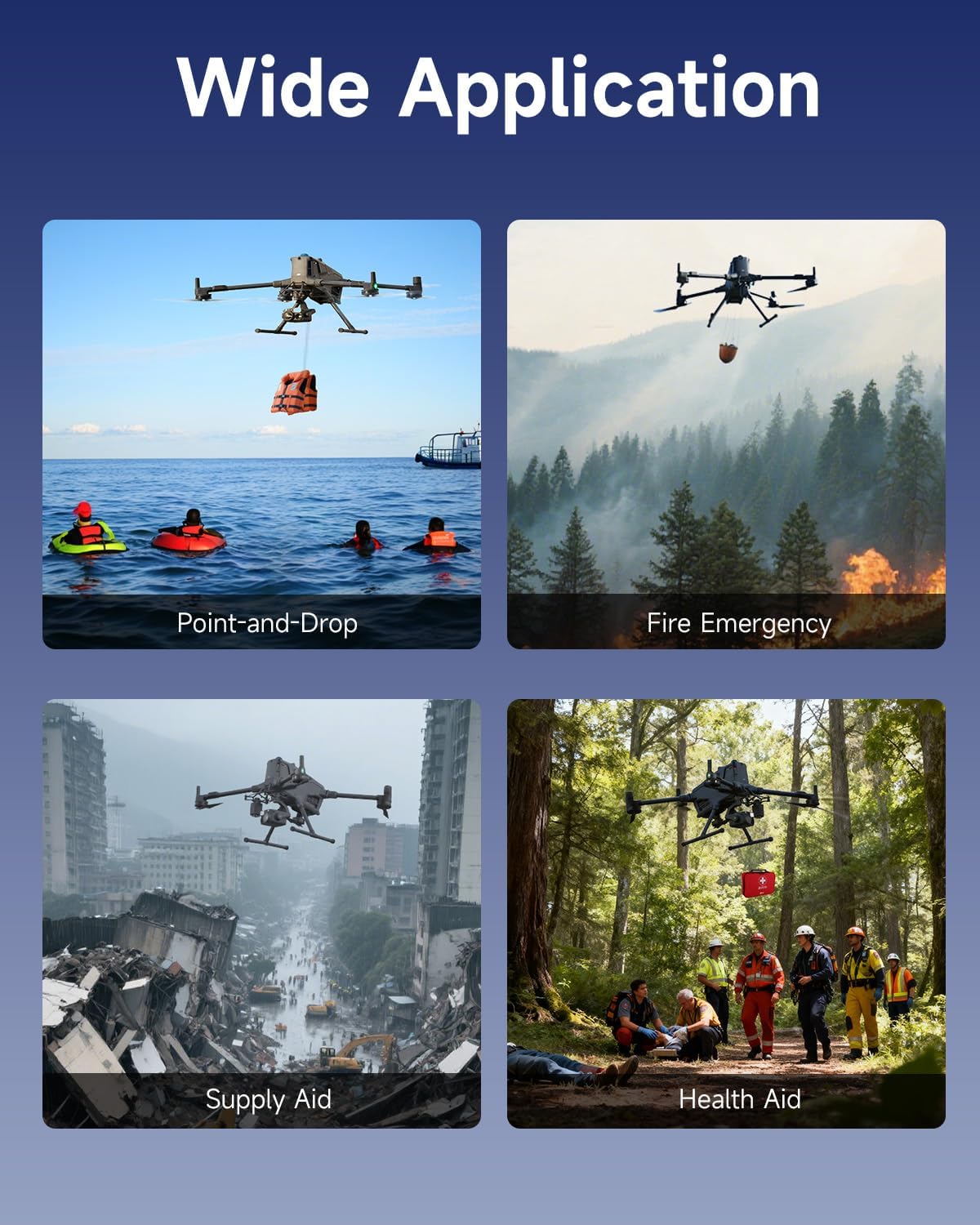 Compatible with DJI Matrice 400, Matrice M350 RTK, and Matrice M300 RTK, the LKTOP Payload Dropper Release is ideal for a wide range of applications, including water rescue, fire emergencies, and supply aid, making it an essential tool for first responders.